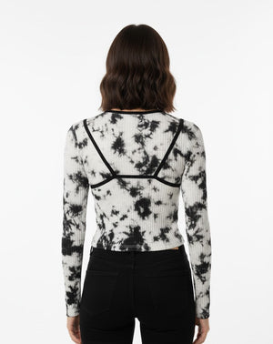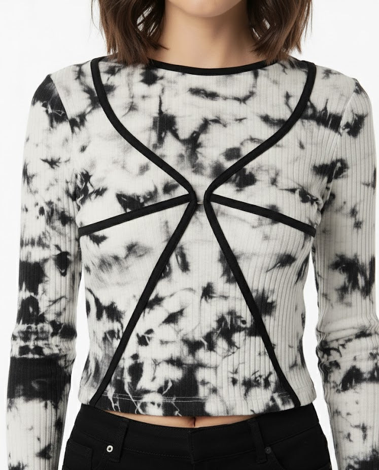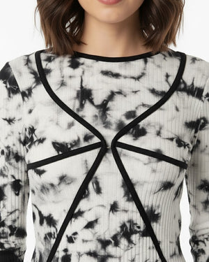 Black and White Tie-Dye Contrast Stitch Top