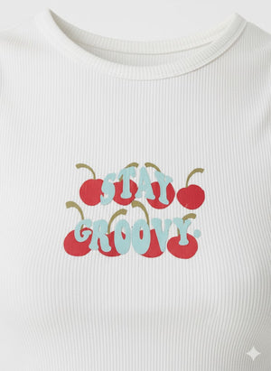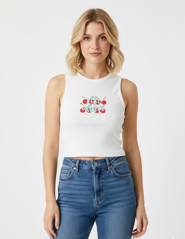Cherry Print Graphic Crop Tank