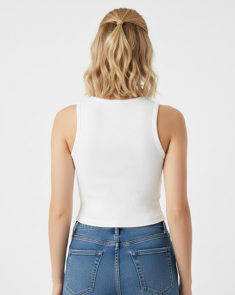 - Design: Classic tank top silhouette with a round neck.