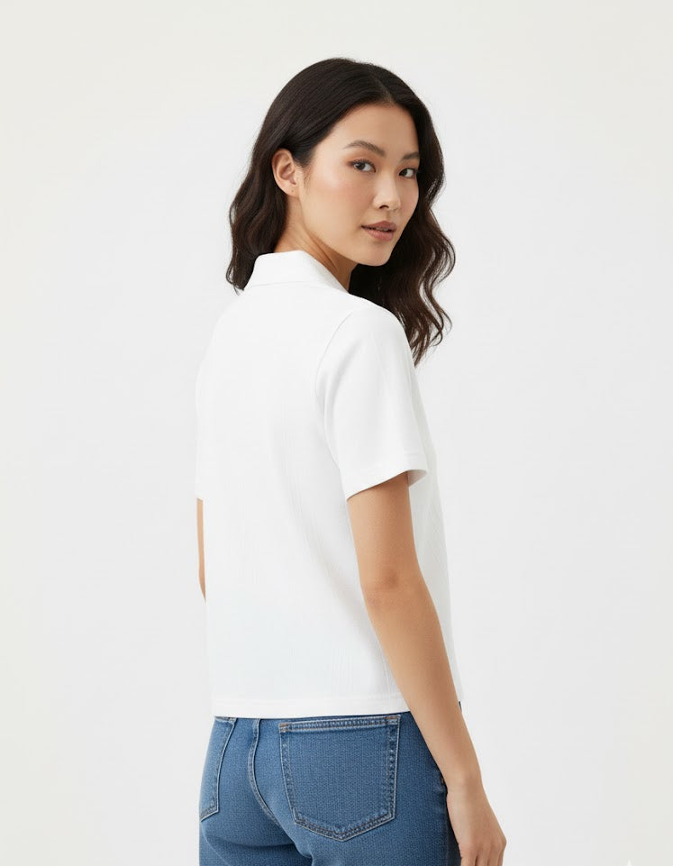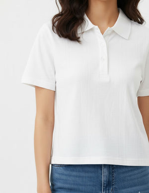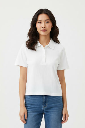 Reimagine your basics with our Essential Polo Top. The crisp collar and classic three-button placket maintain a polished look, while the comfortable short sleeves and relaxed fit make it perfect for everyday wear.
