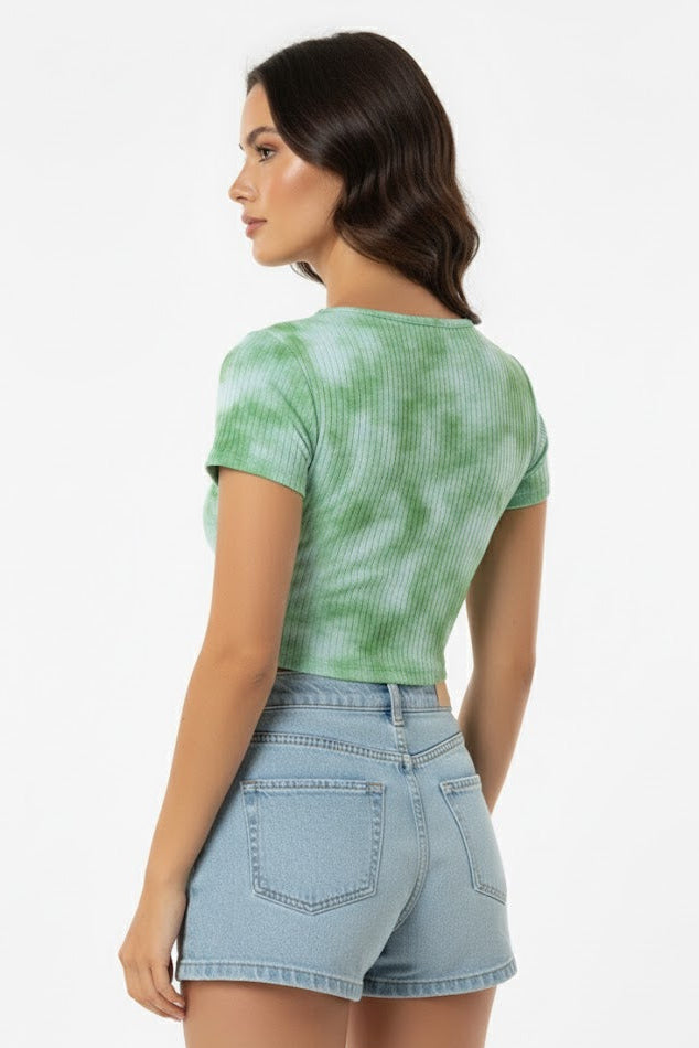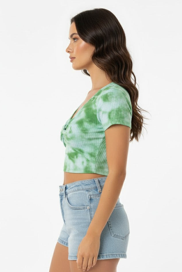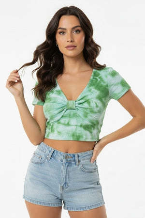 Green Tie-Dye Front Bow Crop