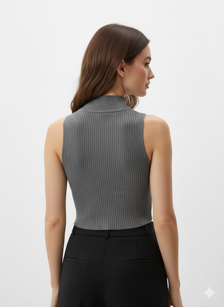 Grey High-Neck Ribbed Tank
