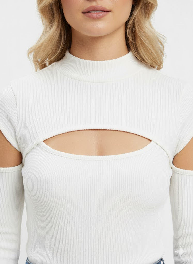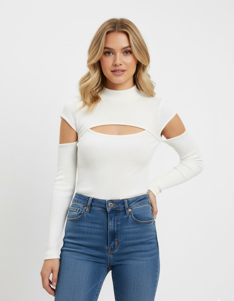 Bolero Knit Sleeve Cutout Bodysuit Top