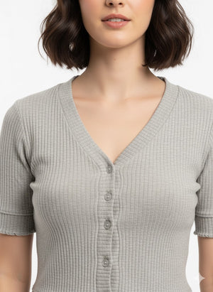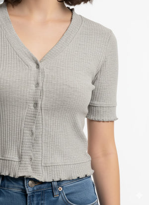 V-Neck Button Crop Cardigan