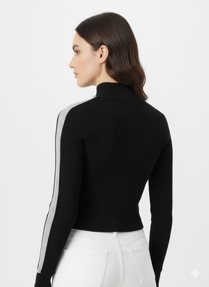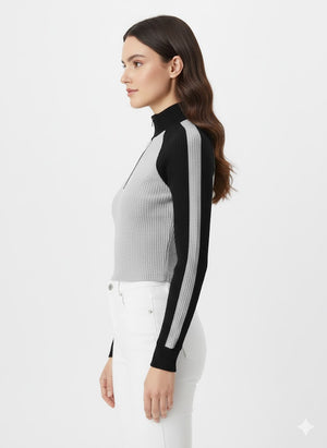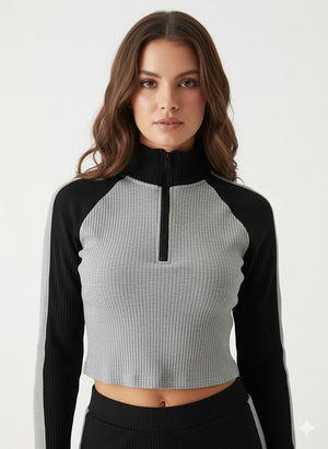 Sporty-Luxe Ribbed Quarter-Zip Crop Top