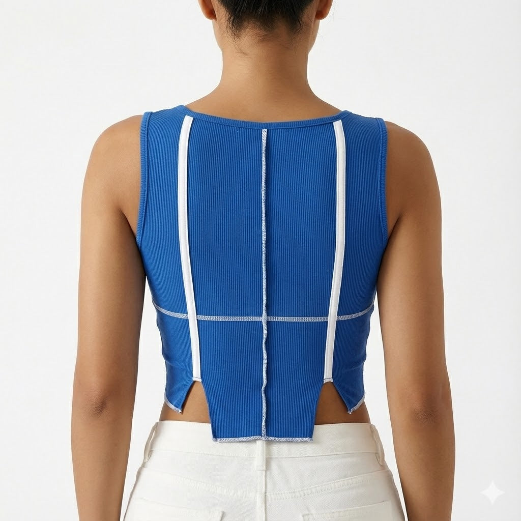 Your new obsession is here. This figure-hugging blue top delivers serious main character energy with its defined corset-style stitching and on-trend square neckline. It’s the ultimate throw-on-and-go piece that guarantees second glances wherever you are headed.
