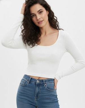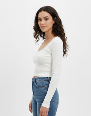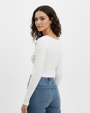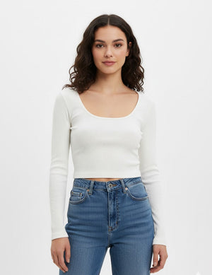 White Ribbed Long Sleeve Top